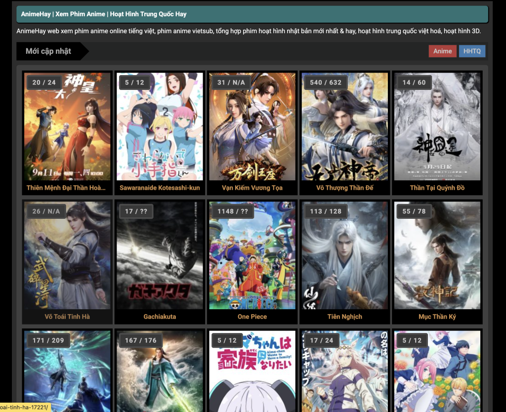 Anime Hay là một trong những trang web/ứng dụng phổ biến tại Việt Nam chuyên cung cấp dịch vụ xem Anime Online (phim hoạt hình Nhật Bản). Trang web cung cấp đa dạng các thể loại anime Việt Nam, từ hành động, lãng mạn, học đường đến kỳ ảo.